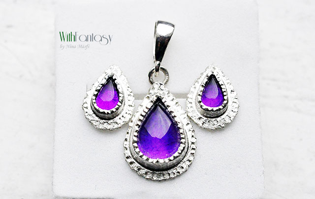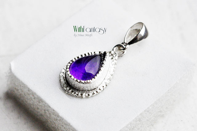 finom, ezüst medál gyönyörű ametiszttel. az ezüst fehér és tekszturált .