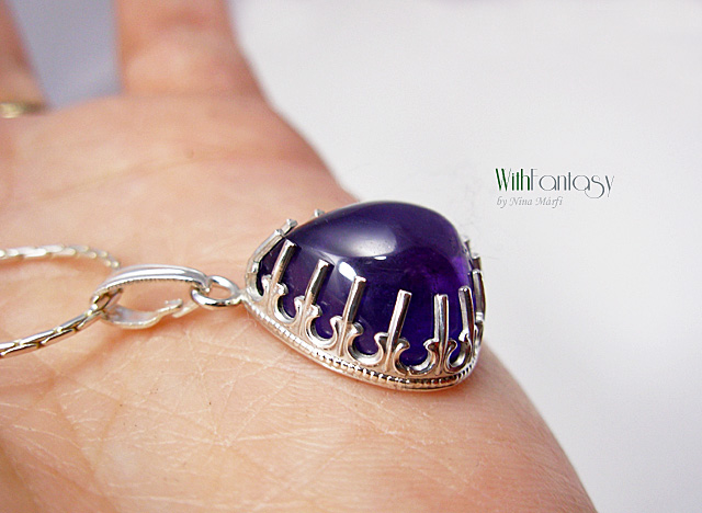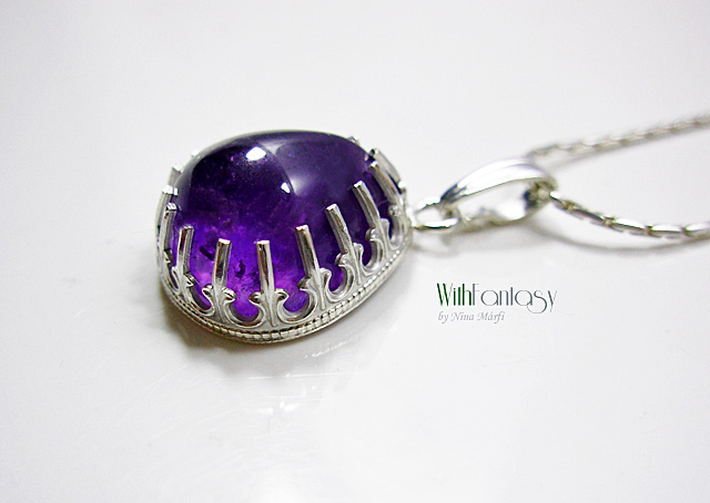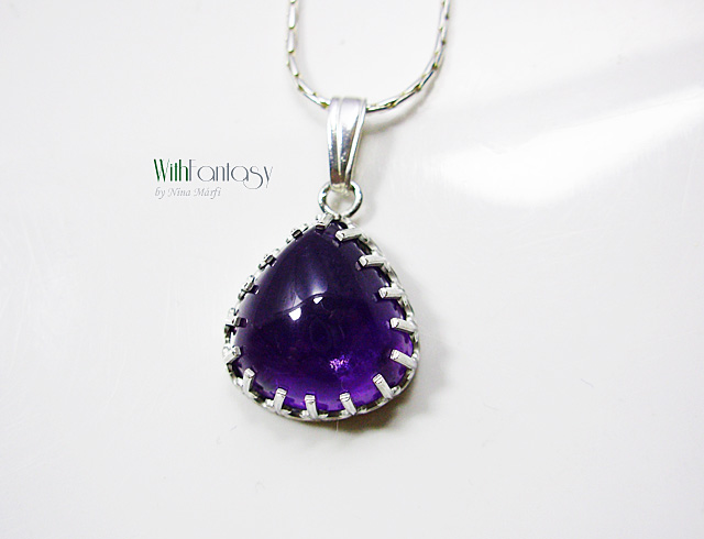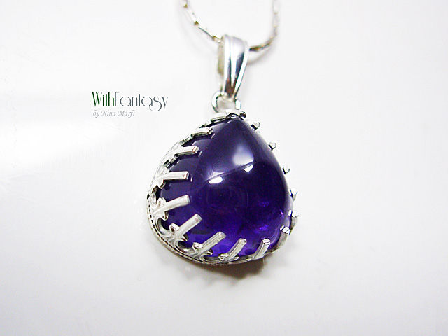 Elegáns, klasszikus ezüst medál ametiszt cseppel. A medál romantikus, retro hatású, kézzel készült. Az ezüst fehér és polírozott. Kérésre oxidálom.