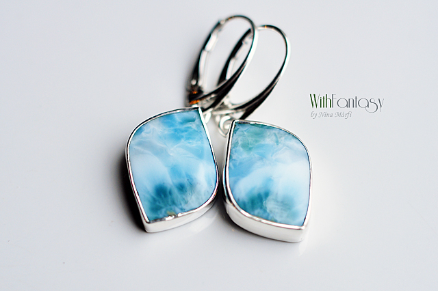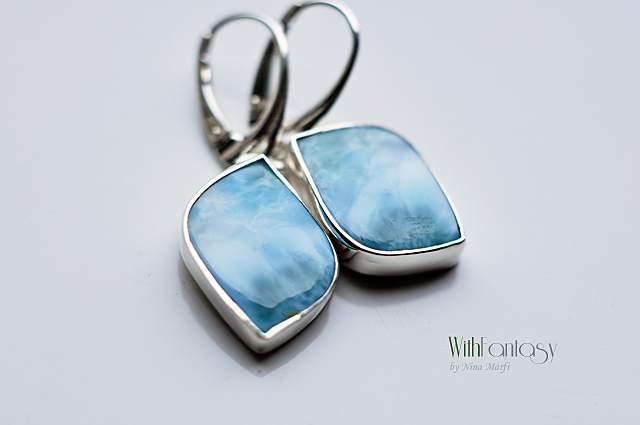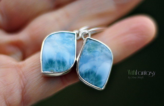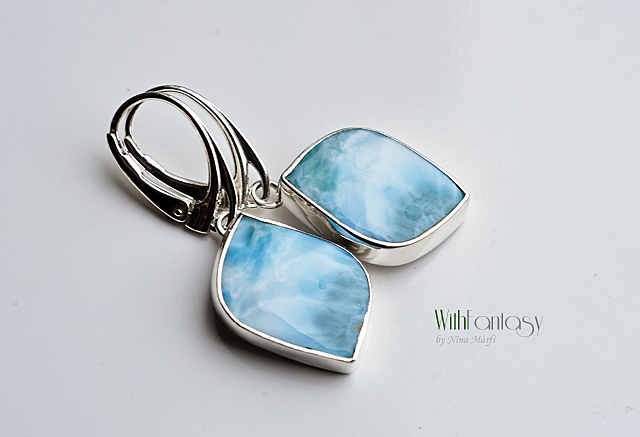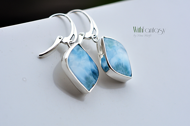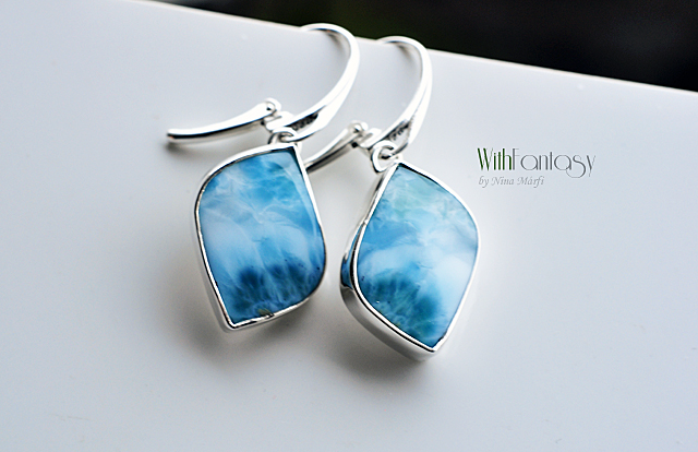 Egyedi, ezüst fülbevaló különleges, gyönyörű,  larimarral, a kövek elsőosztájú.