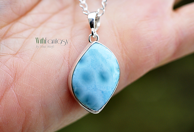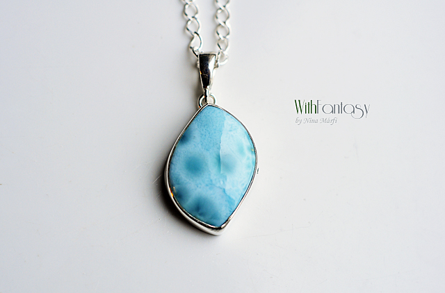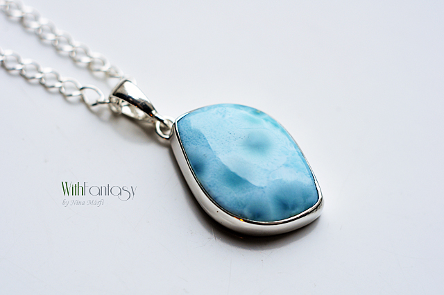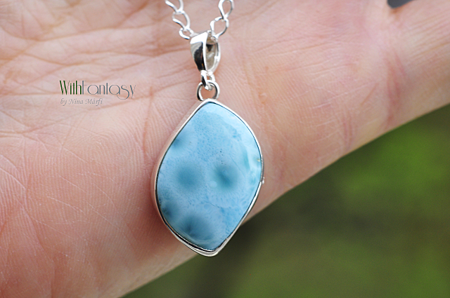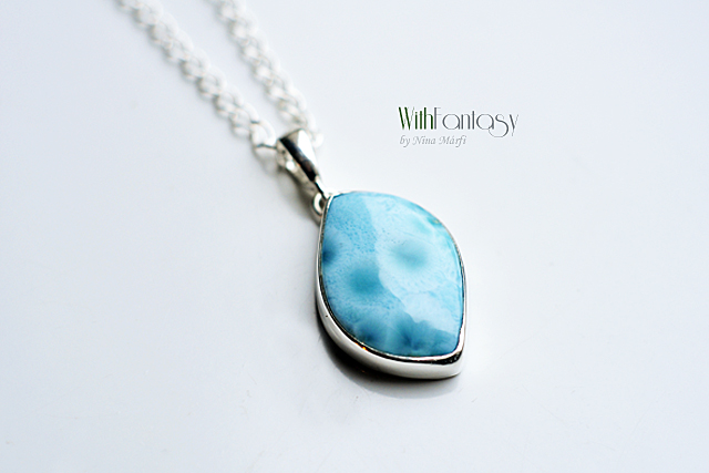 Egyedi, ezüst medál különleges, gyönyörű, larimar kabosonnal, a kő elsőosztájú.
