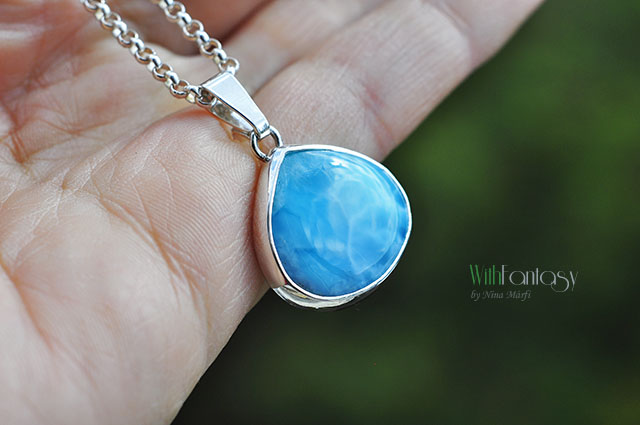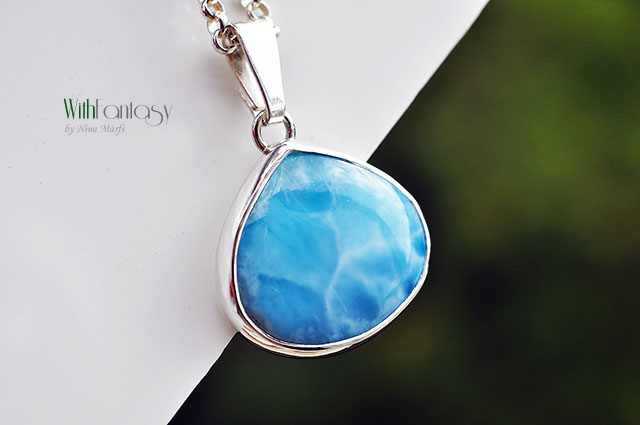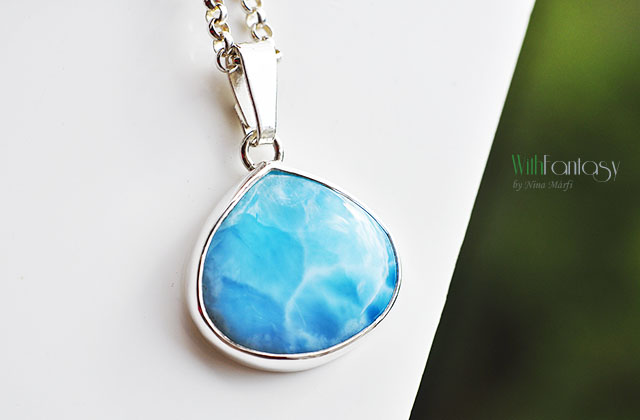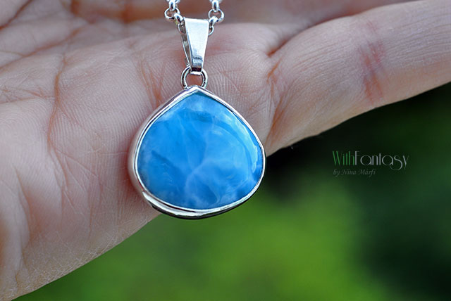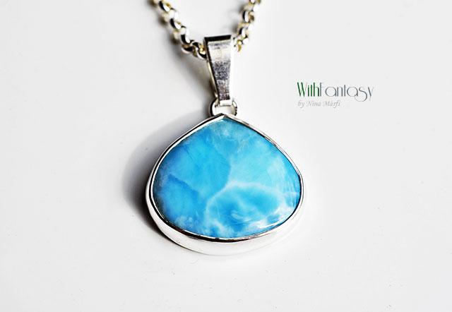 Egyedi, ezüst medál különleges, gyönyörű, larimar kabosonnal, a kő elsőosztájú.