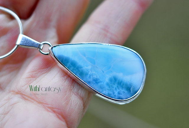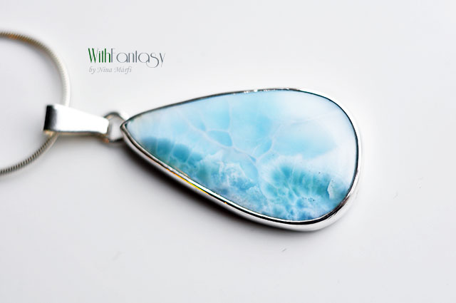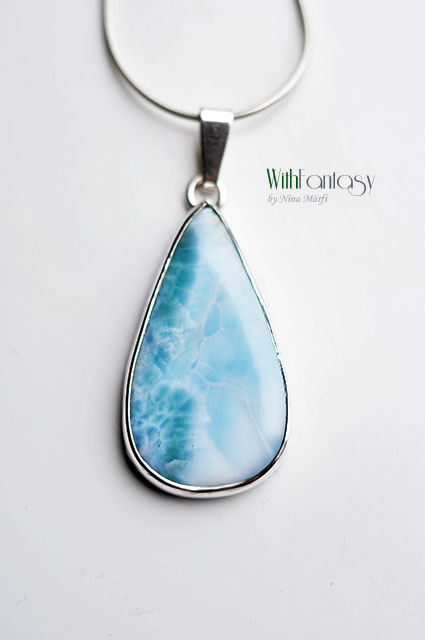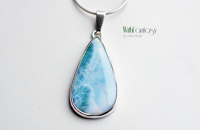 Egyedi, ezüst medál különleges, gyönyörű, larimár kabosonnal, a kő elsőosztájú.