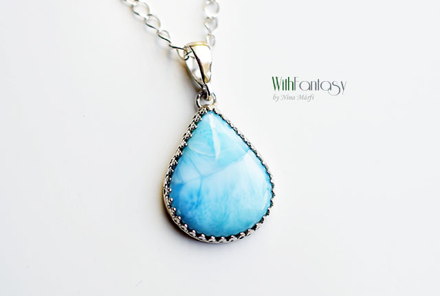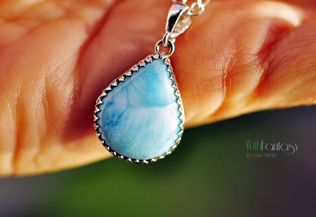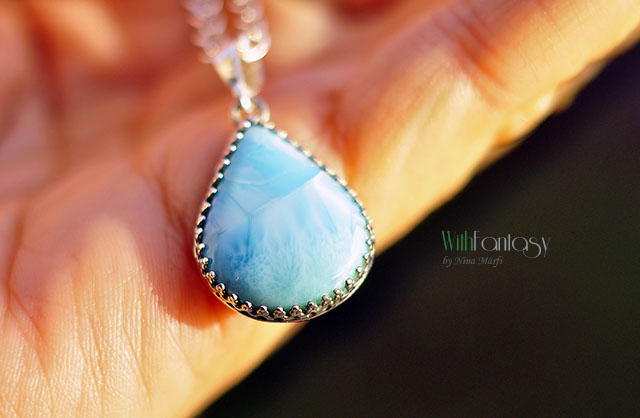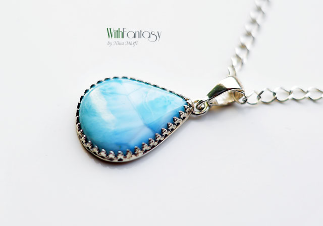 Finom, romantikus, igazan nőies, ezüst medál különleges larimarral. A kő legjobb minőségű, tiszta, gyönyörű kék színű, olyan mint a trópusi lagúna. Tökéletes nyárra és a téli időszakra is. Az ezüst fehér, polírozott.