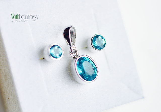Egyszerű, minimalista, ezüst medál gyönyörű apatittal. A kő nagyon jó minőségű, tiszta, világos (türkíz színű), nagyon elegáns és diszkrét. Az ezüst fehér, polírozott.