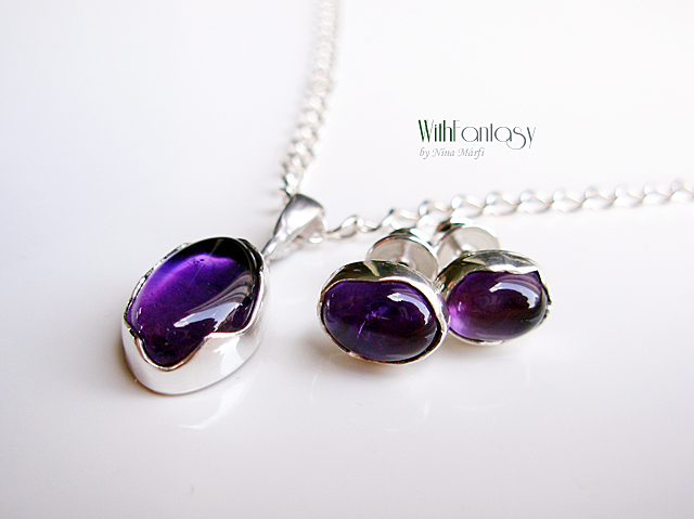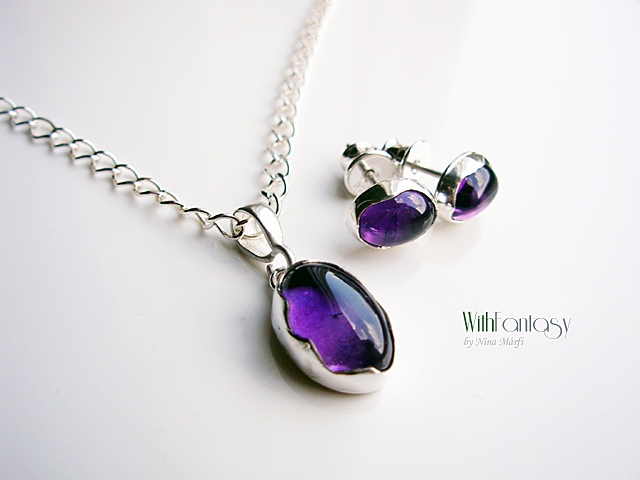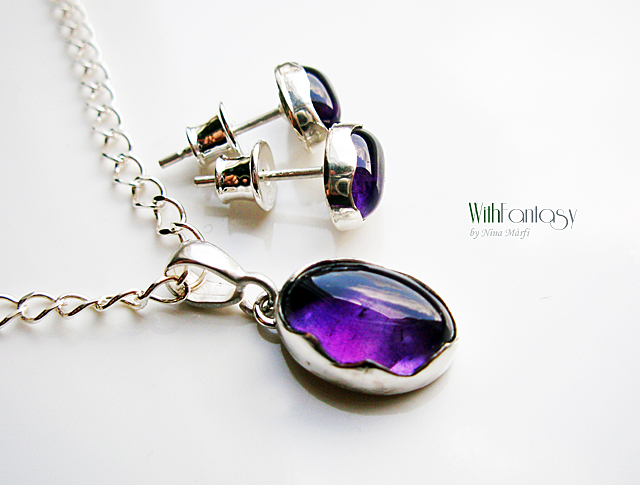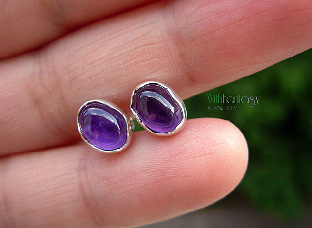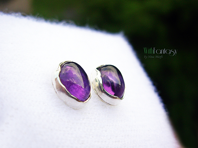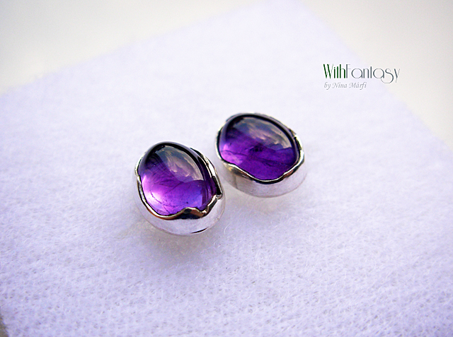 Kis, bedugós, ezüst fülbevaló gyönyörű ametiszttel ( a kövek nagyon jó minőségűek)