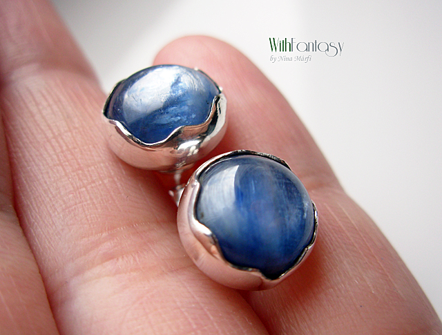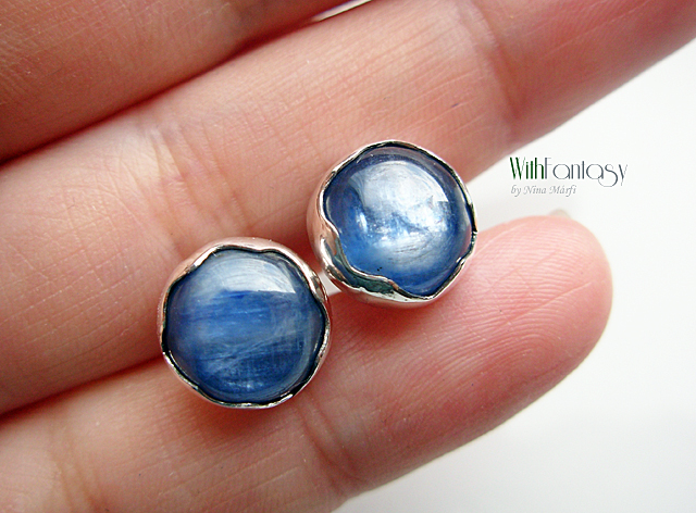Kis, bedugós, ezüst fülbevaló gyönyörű kianittal ( a kővek nagyon jó minőségűek, tiszta, intenziv kék színű)