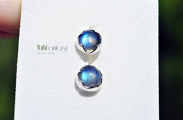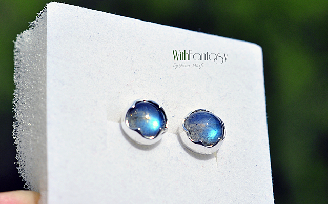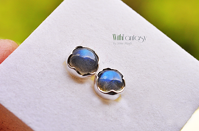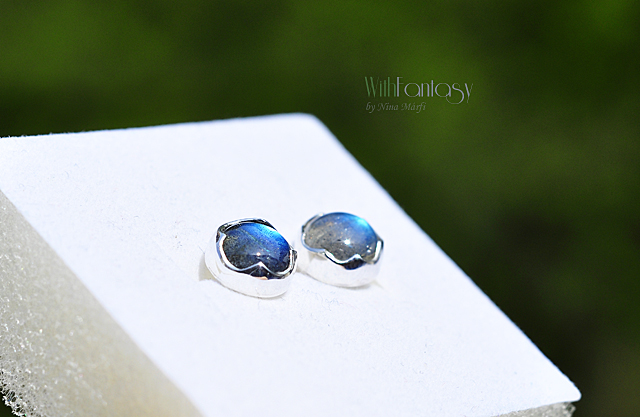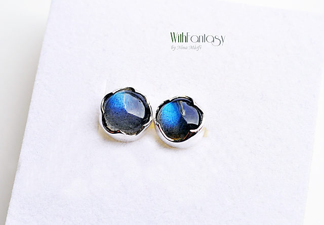 Egyszerű, bedugós, ezüst fülbevaló gyönyörű labradorittal .A kövek legjobb  minőségűek – tiszta,intenzív kék fénnyel ragyognak.
