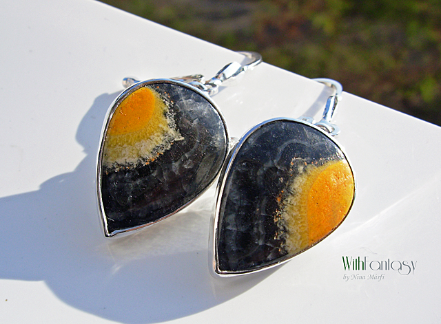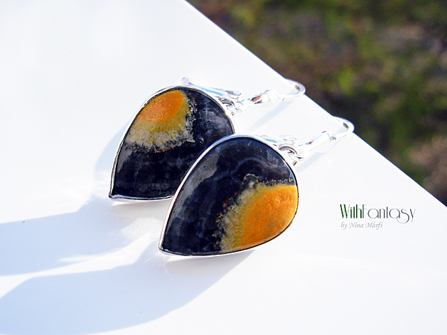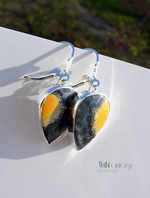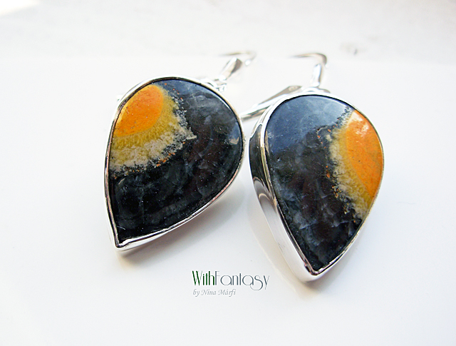Egyszerű, minimalista, ezüst fülbevaló érdekes és nagyon trendy most őszell bumnblebee jáspissal. A kövek gyönyörűek, nagyon jó minőségűek. Az ezüst fehér, polírozott.