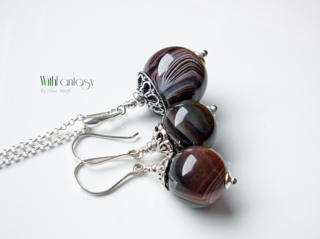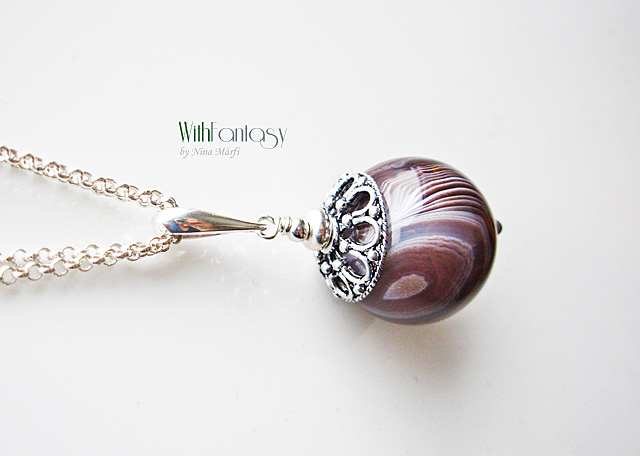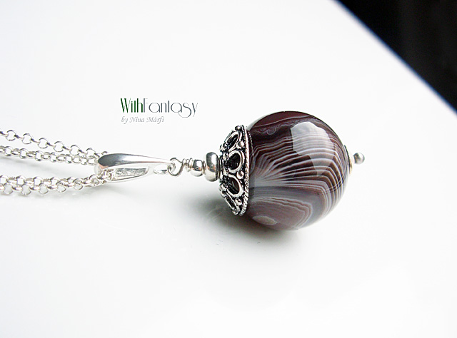 Érdekes medál nyugodt színekben, gyönyörű, csíkos botswana acháttal. Kézzel készült ezüstből és más fémekből.
