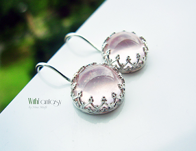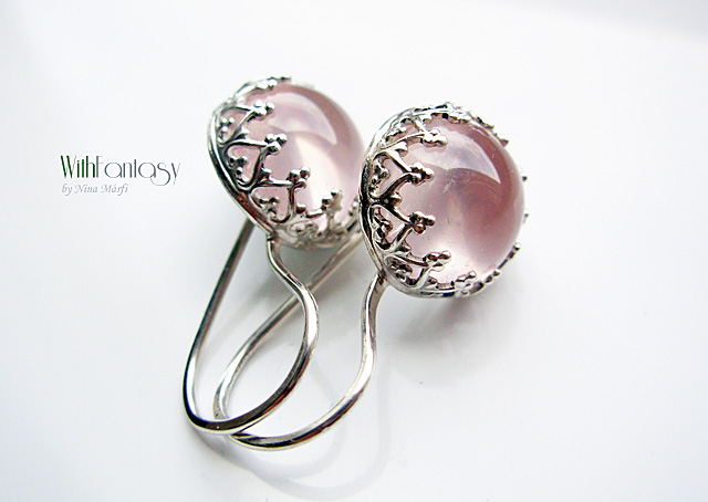 Igazan nőies, friss, világos és diszkrét fülbevaló rózsakvarccal. A fülbevaló gyönyörűen fog kinézni a napbarnított bőrön.