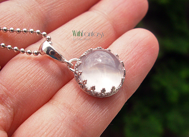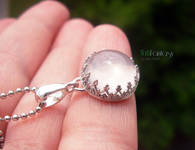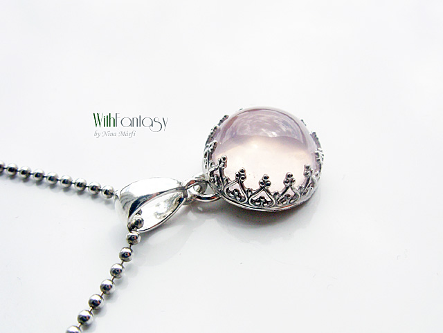 Igazan nőies, friss, világos és diszkrét medál rózsakvarccal. A medál gyönyörűen fog kinézni a napbarnított bőrön.