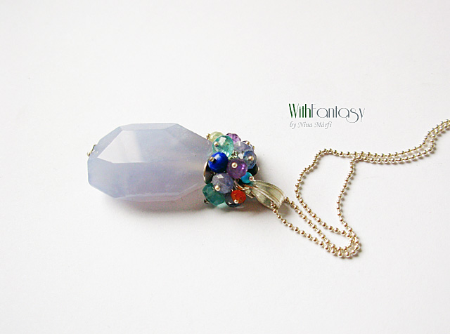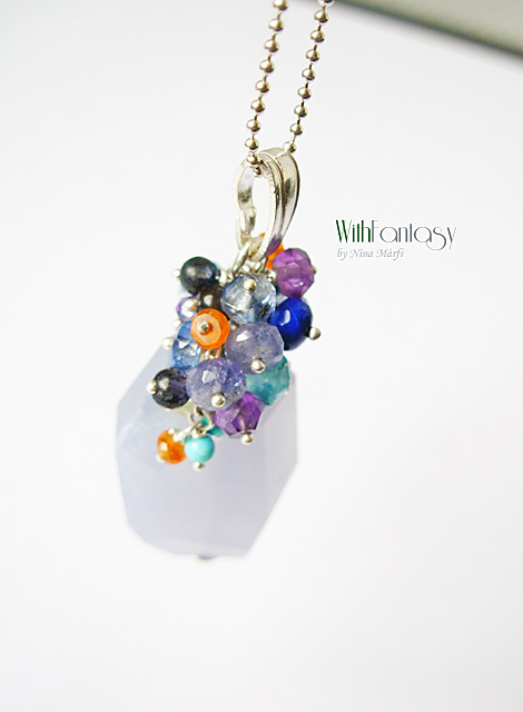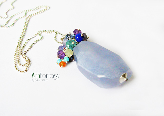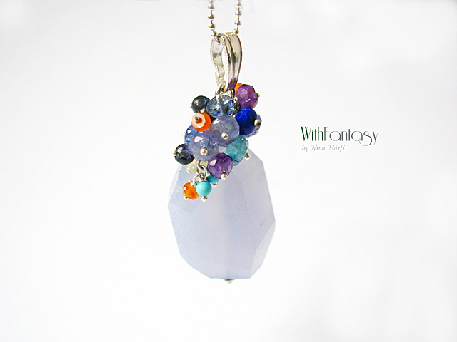 Ezüst, nagy, nőies medál gyönyörű, kék kalcedonnal, tanzanittal, apatittal, lápisszal,türkizzel, karneollal, kianittal, iolittal, ametiszttel.