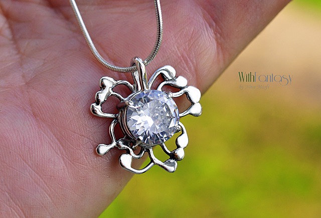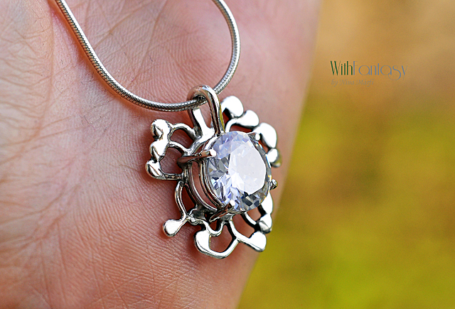 Egyedi, diszkrét, nagyon univerzális medál tiszta, győnyőrű fehér cirkóniaval ( 12mm). A medál kézzel készült, és polírozott.