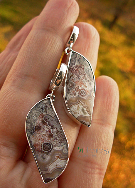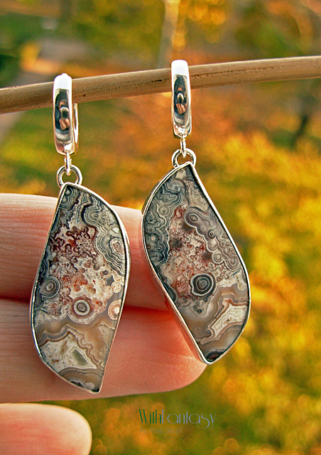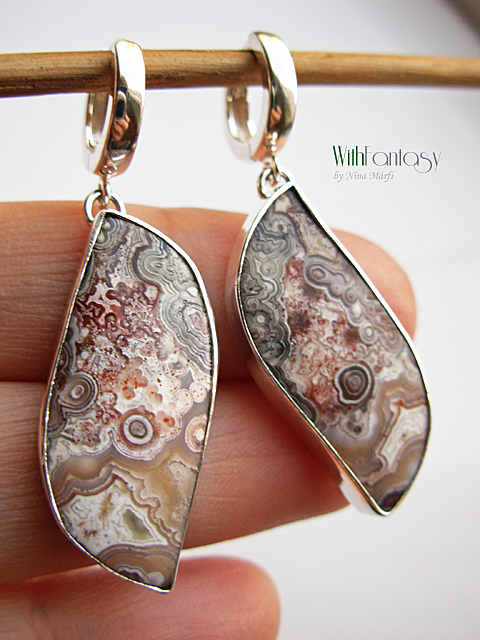 Egyszerű, minimalista, ezüst fülbevaló érdekes és nagyon trendy most őszell crazy lace acháttal. A kövek gyönyörűek, nagyon jó minőségűek. Az ezüst fehér, polírozott.