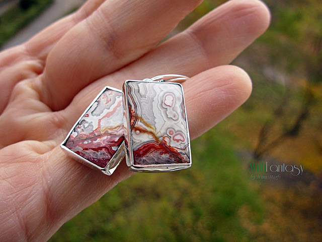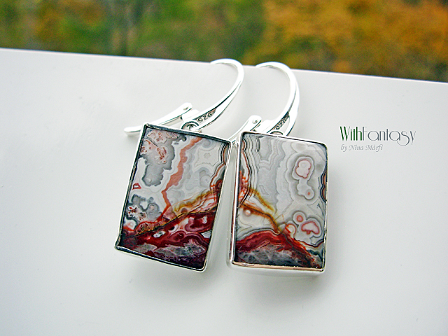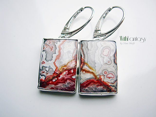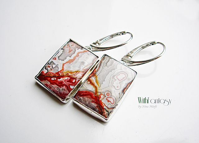 Egyszerű, minimalista, ezüst fülbevaló érdekes és nagyon trendy most őszell crazy lace acháttal. A kövek gyönyörűek, nagyon jó minőségűek. Az ezüst fehér, polírozott.