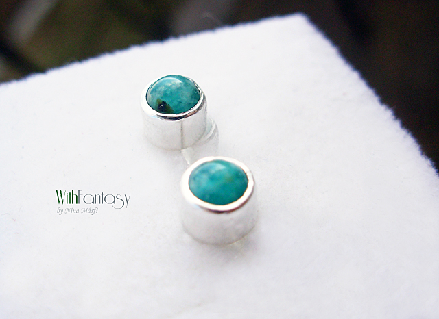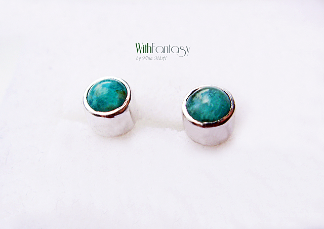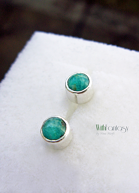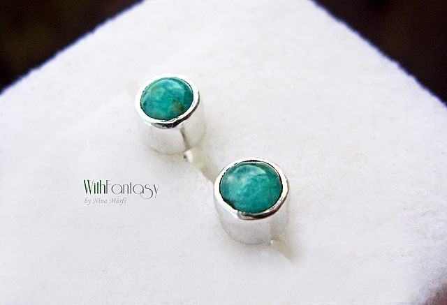Kis, univerzális, bedugós, ezüst fülbevaló amazonittal . Az ezüst fehér és polírozott.