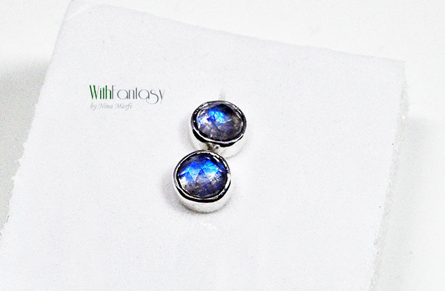 Apró, diszkrét, bedugós fülbevaló gyönyörű holdkövekkel, a kövek nagyon erős kék fénnyel ragyognak. Az ezüst részben oxidált és polírozott.
