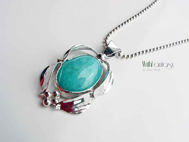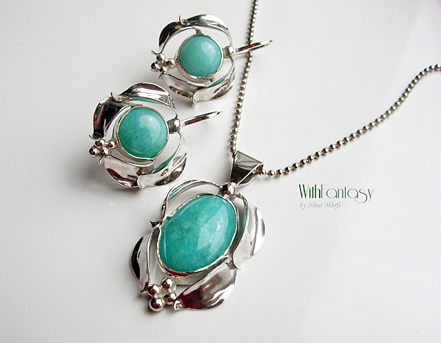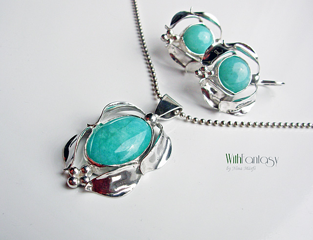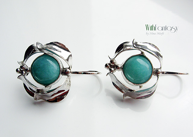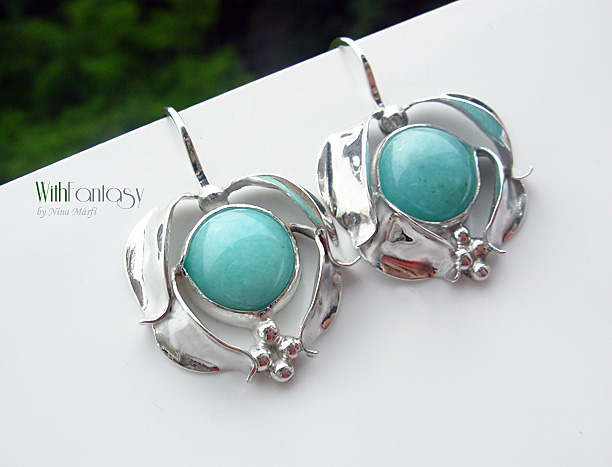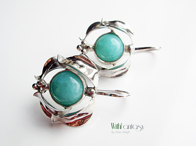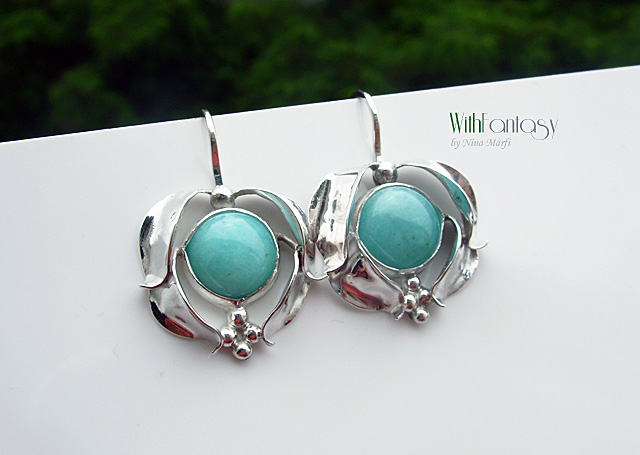 Egyedi, ezüst fülbevaló amazonittal, rendélésre készült.