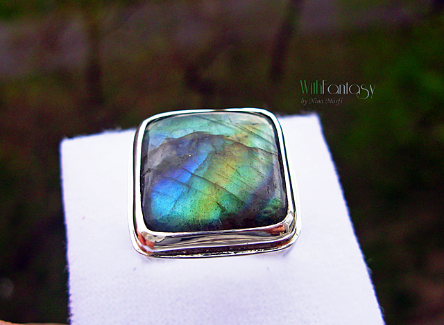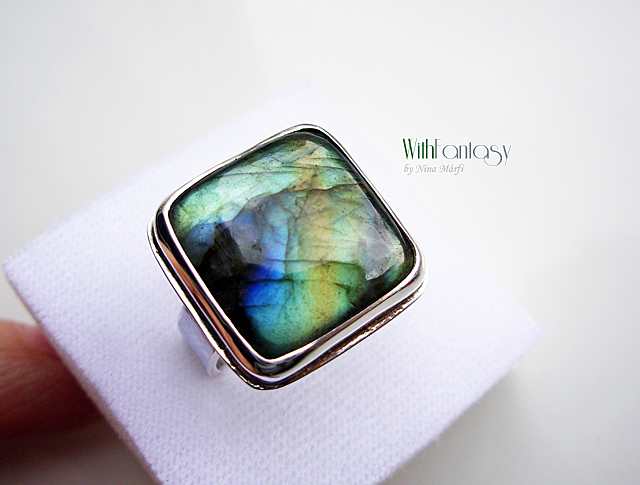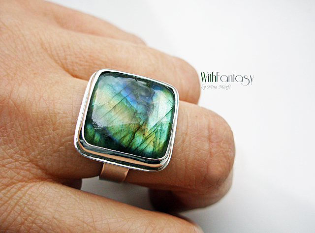 Egyszerű, ezüst gyűrű gyönyörű labradorit kabosonnal. A kő nagyon szép, kék és arany fénnyel ragyog. Az ezüst fehér. Kérésre oxidálom.