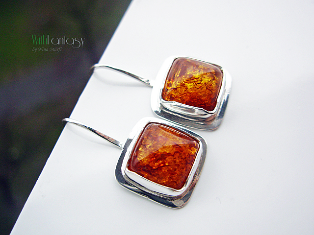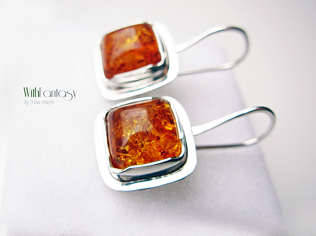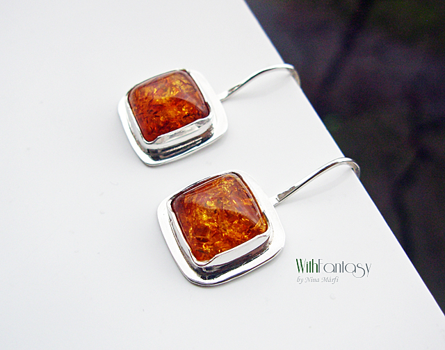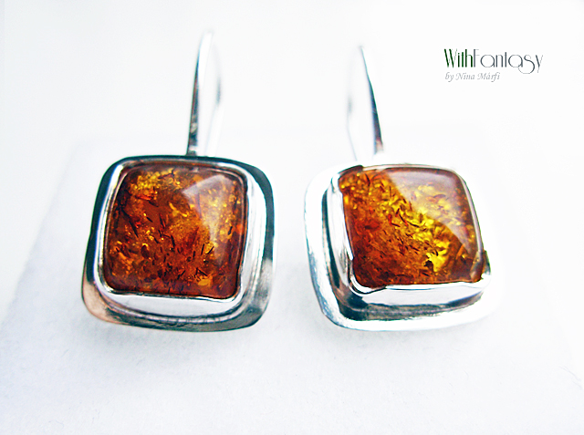 Klasszikus, univerzális, ezüst fülbevaló gyönyörű borostyánnal . Az ezüst fehér és polírozott ( Kéresre oxidálom)