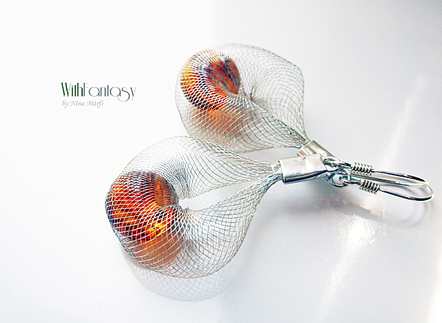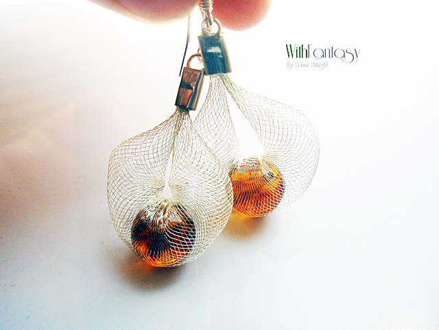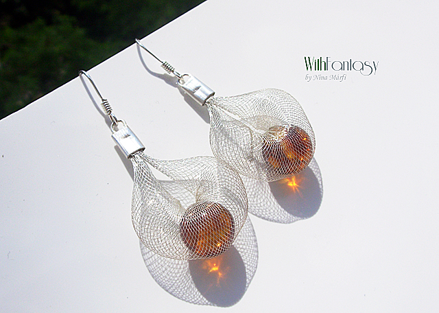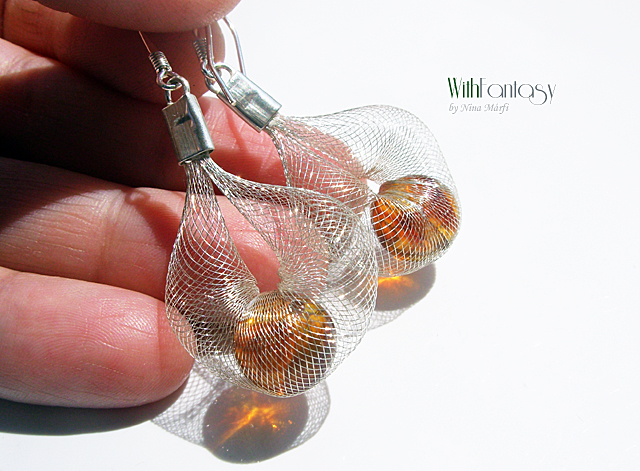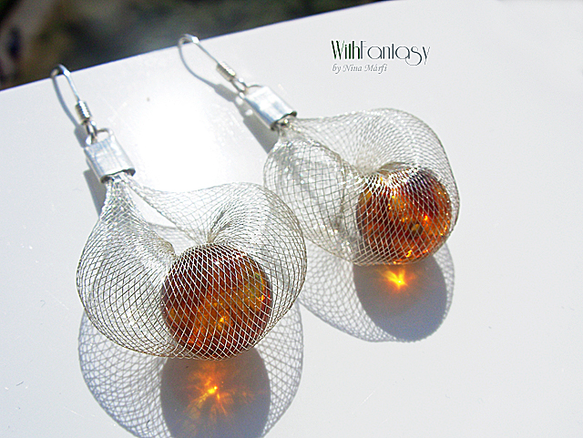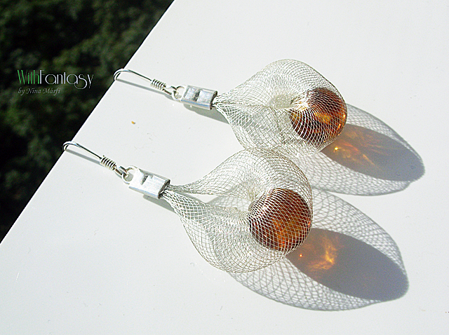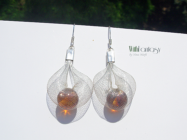 Egyszerű, ezüst, nyári fülbevaló természetes arany borostyánnal. A fülbevaló nagyon könnyű.