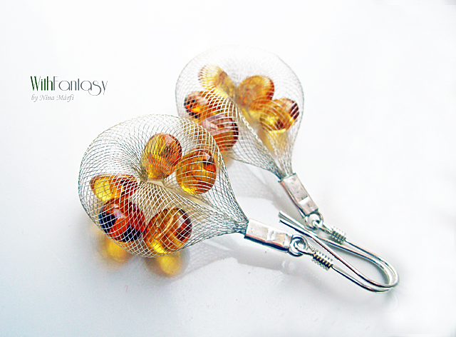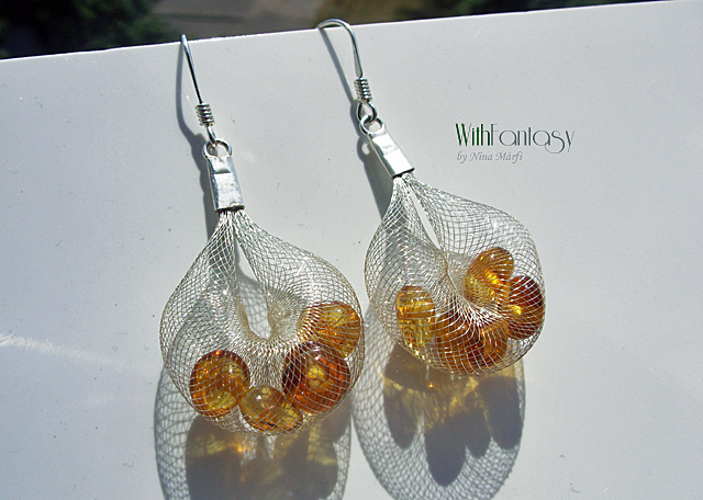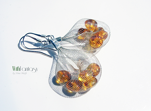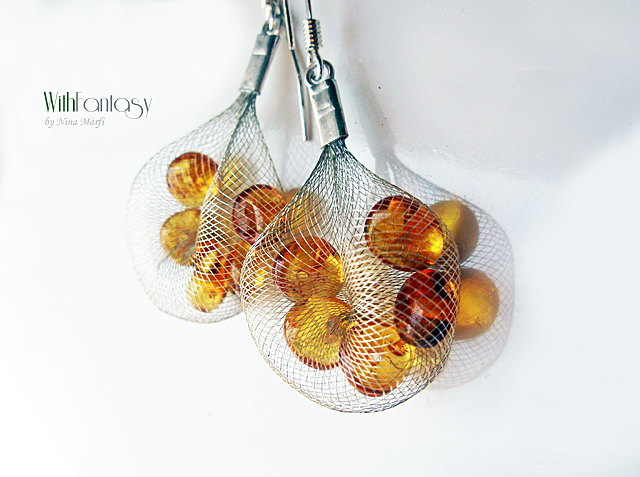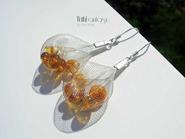 Egyszerű, ezüst, nyári fülbevaló természetes arany borostyánnal. A fülbevaló nagyon könnyű.