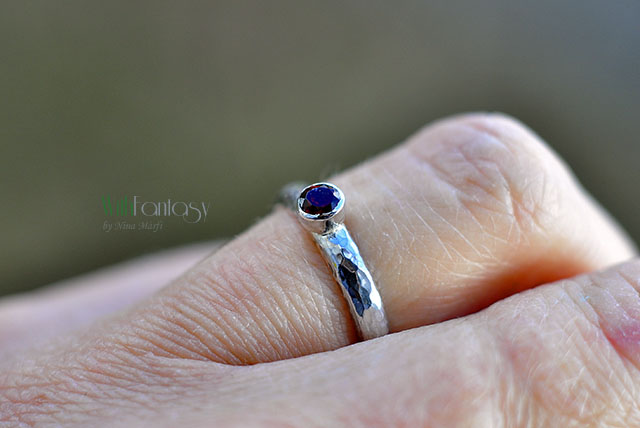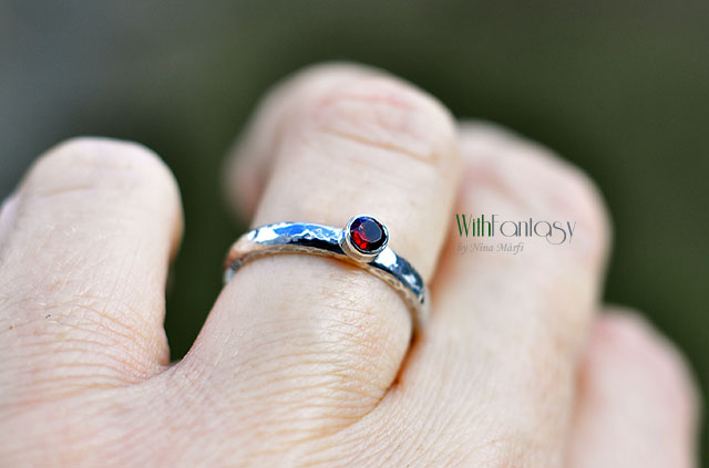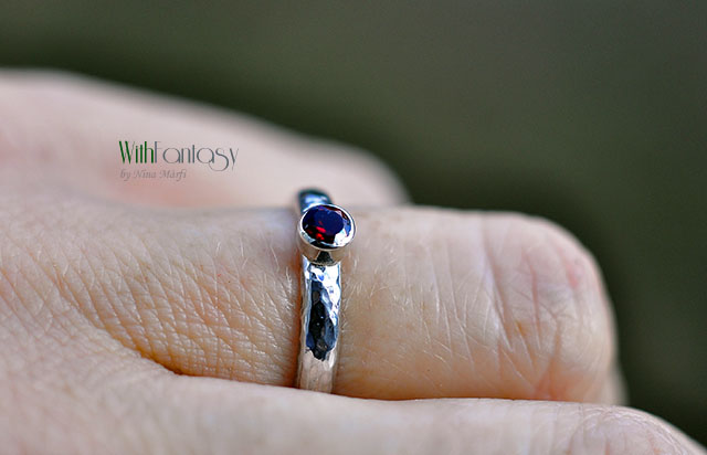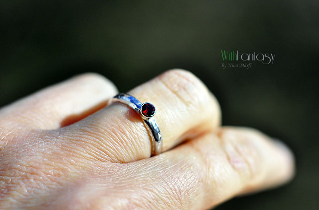 Finom, egyedi gyűrű kis fazettált gránáttal. A kő (3,5mm) gyönyörű, vörös színű, nagyon jó minőségű.