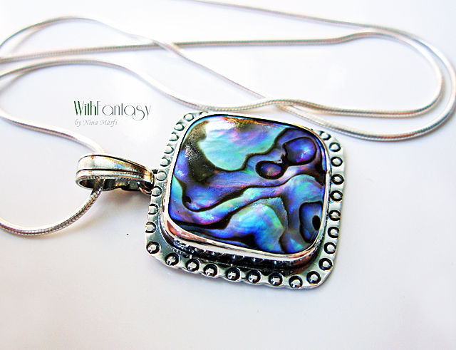 Egyszerű, univerzális, ezüst medál gyönyörű paua kagylóval. A kagyló első osztályú, intenzív, tiszta kék és zöld színű. Az ezüst fehér, polírozott.