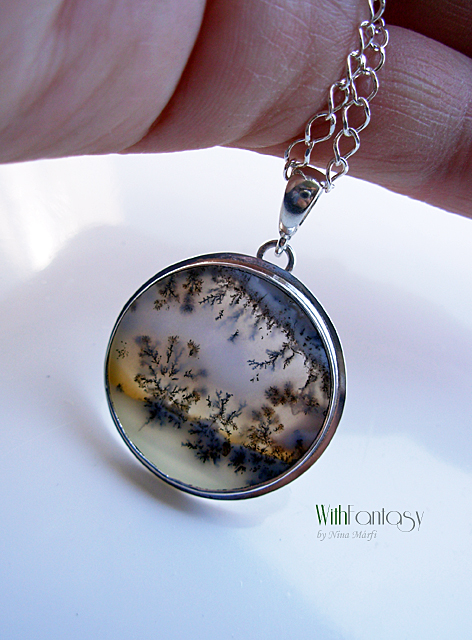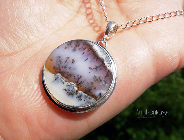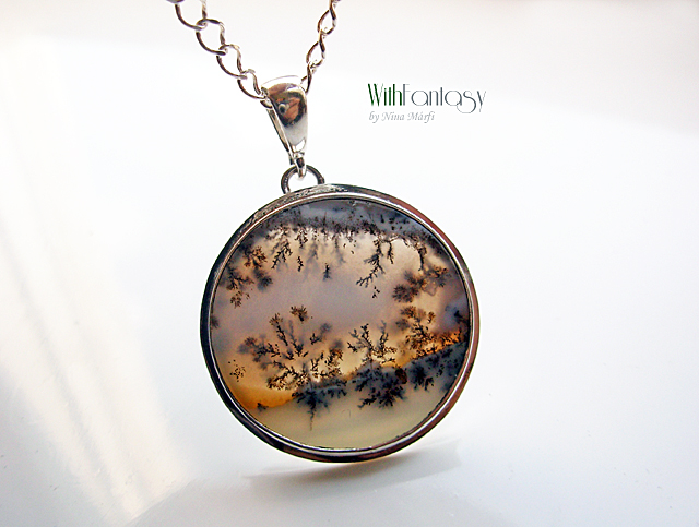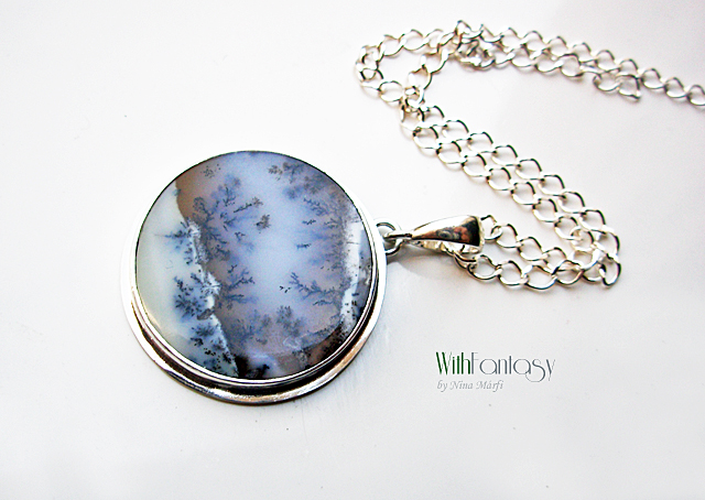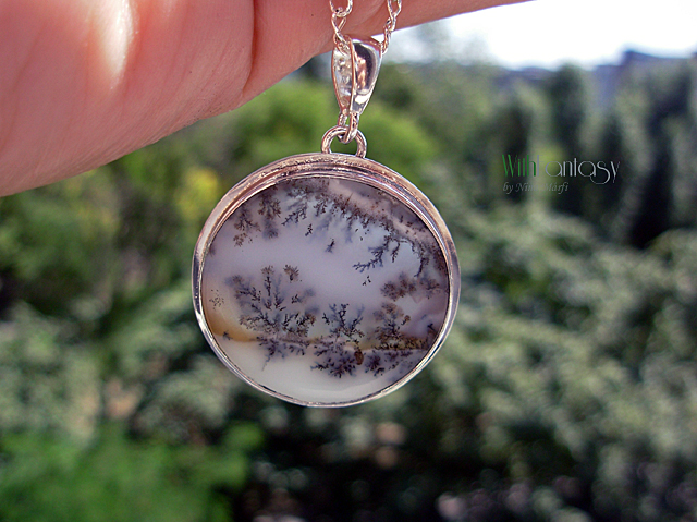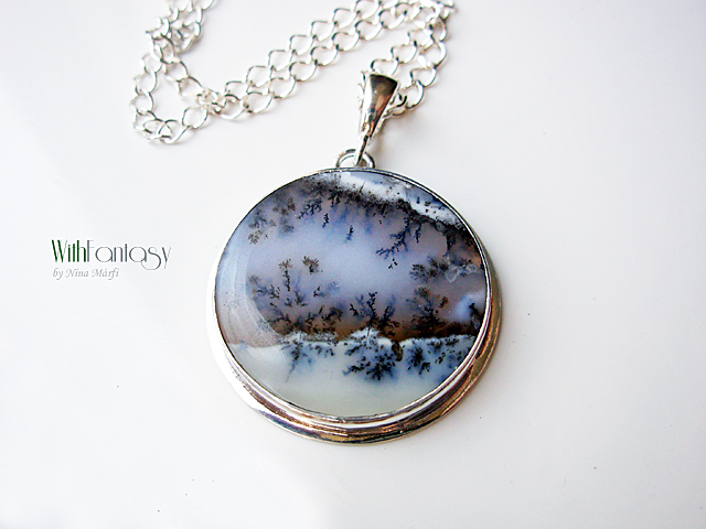 Egyszerű, igazan nőies, ezüst medál különleges dendrites acháttal. A kő nagyon jó minőségű és egyedi. Ez a dendrites achát olyan, mintha a természet festette miniatűr látkép lenne. Tökéletes nyárra és a téli időszakra is. Az ezüst fehér és polírozott.