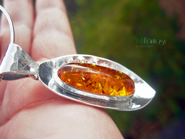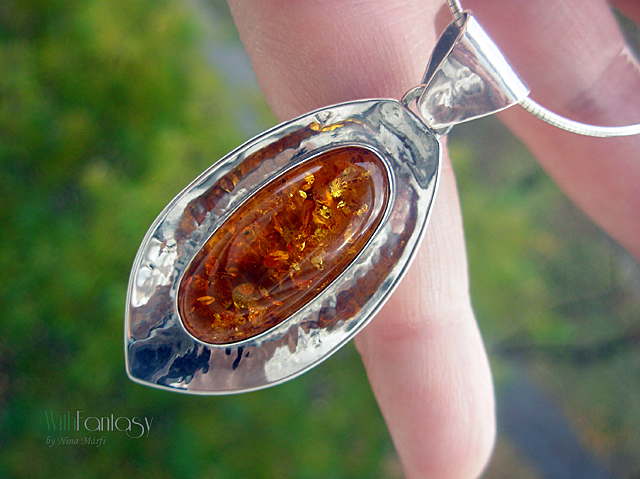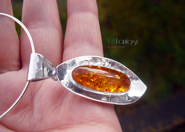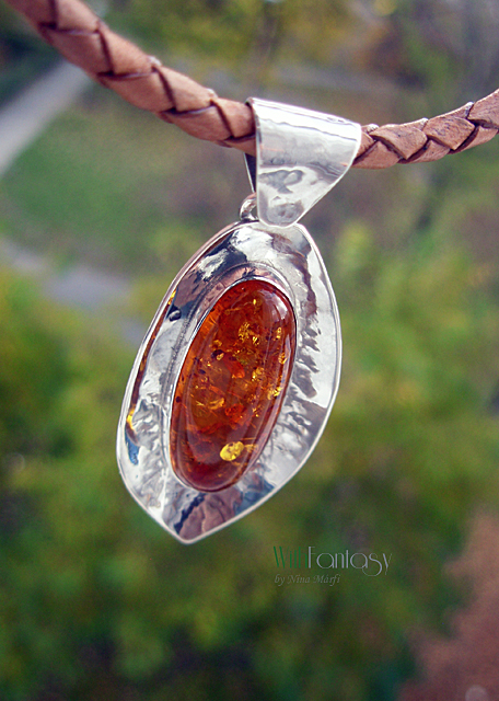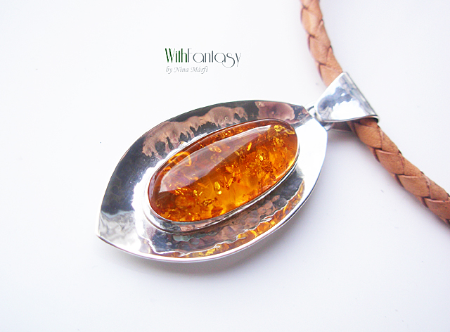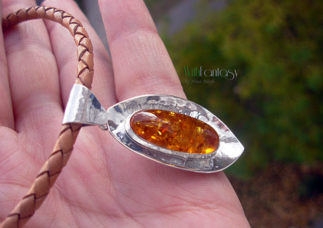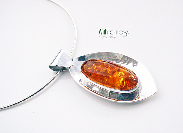 Egyedi, ezüst medál gyönyörű mézes borostyánnal. Az ezüst fehér és polírozott (kéresre oxidálom)