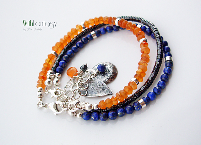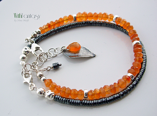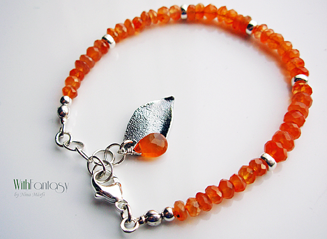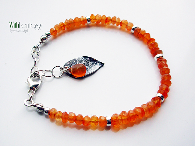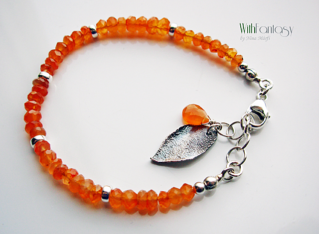 Finom, univerzális, ezüst kárkötő, kis, gyönyörű karneollal (4mm). A kövek nagyon jó minöségűek.