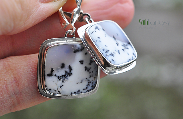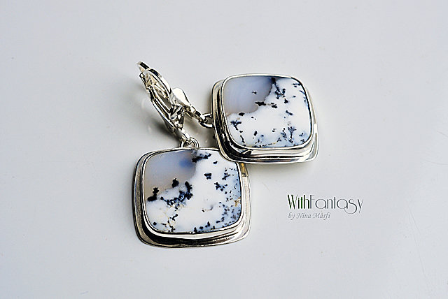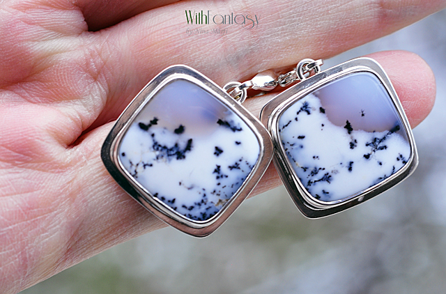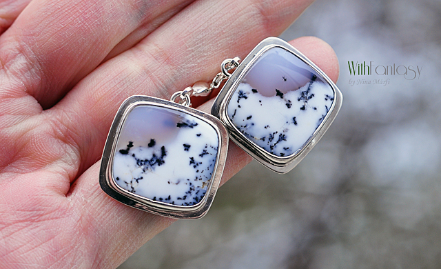 Egyedi, univerzális, ezüst fülbevaló különleges dendrit acháttal. A kövek nagyon jó minőségűek és egyediek. Ezek a dendrit achátok olyanok, mintha a természet festette miniatűr látképek lennének. Tökéletes nyárra és a téli időszakra is. Az ezüst fehér és polírozott.