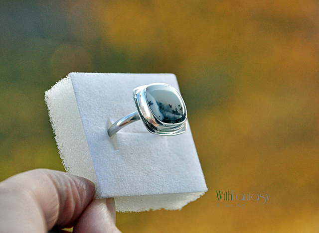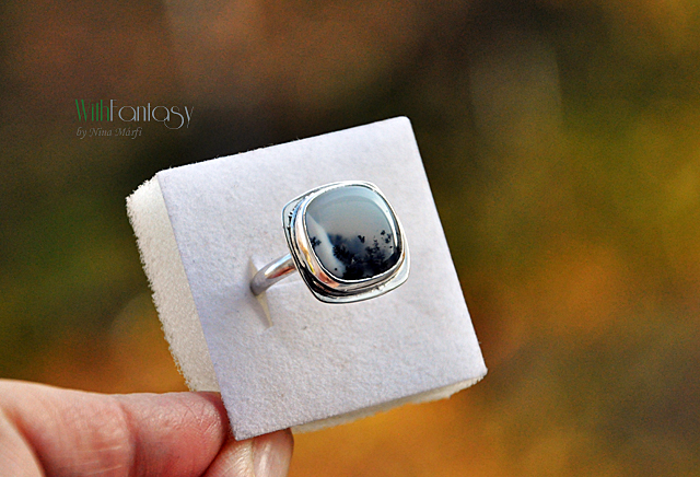Klasszikus, univerzális, ezüst gyűrű nagy, különleges dendrites acháttal. A kő nagyon jó minőségű és egyedi. Ez a dendrites achát olyan, mintha a természet festette miniatűr látkép lenne. Tökéletes nyárra és a téli időszakra is. Az ezüst fehér és polírozott.