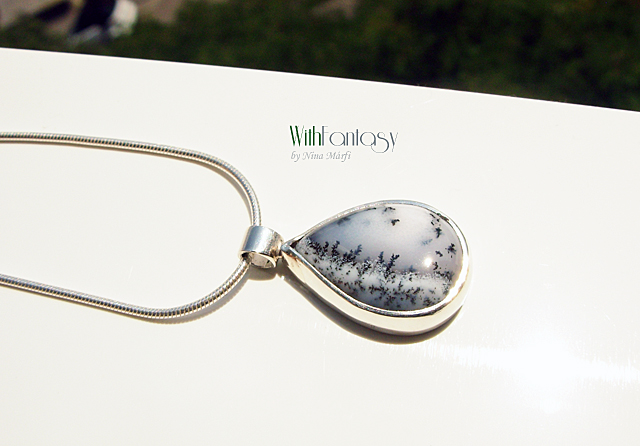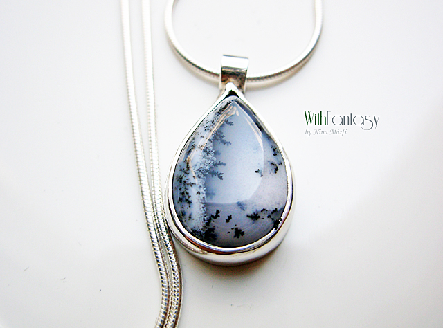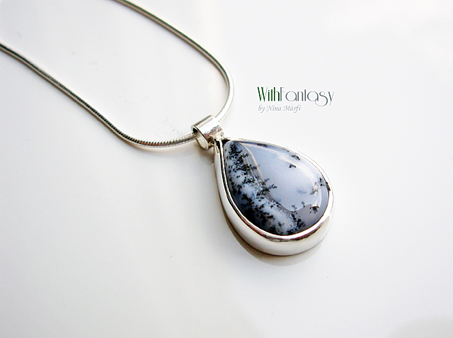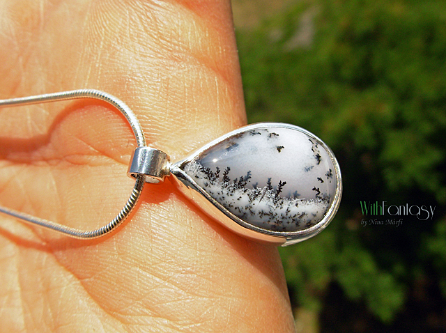 Egyszerű, finom ezüst nyaklánc gyönyörű, érdekes dendrit acháttal. A kő nagyon jó minőségű és egyedi. Ez a dendrites achát olyan, mintha a természet festette miniatűr látkép lenne. Tökéletes nyárra és a téli időszakra is. Az ezüst fehér és polírozott.