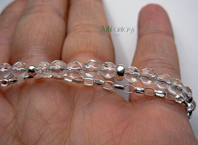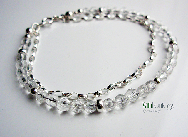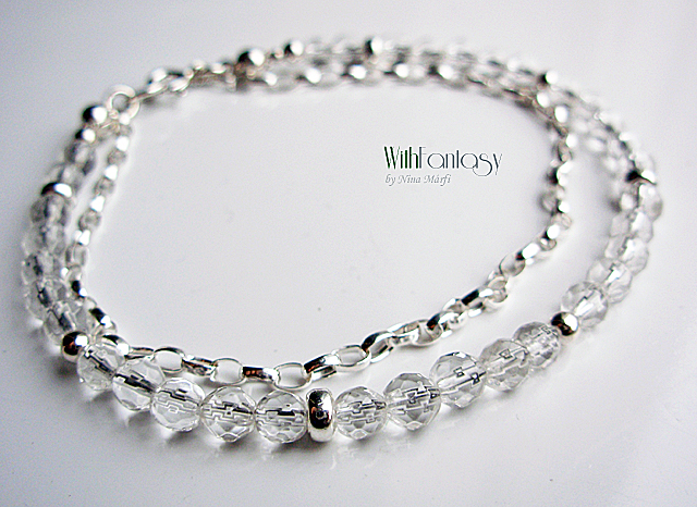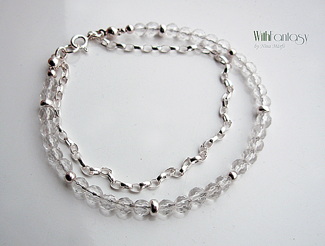Finom, univerzális, ezüst kárkötő, kis hegyi kristály gömbökkel (4mm).