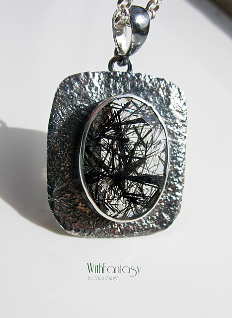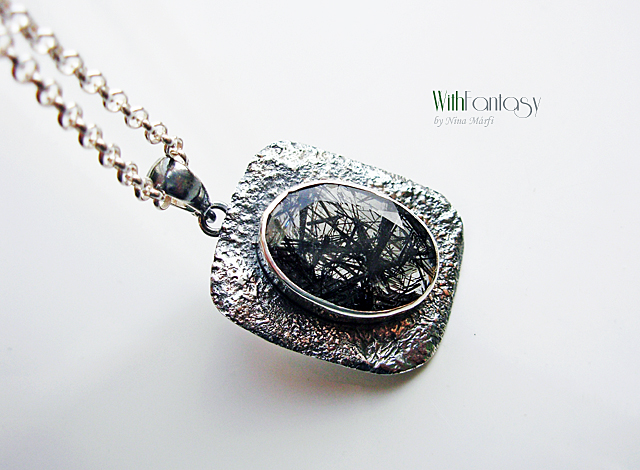 Érdekes, univerzális, ezüst medál különleges kvarccal. A kő nagyon jó minőségű, egyedi és univerzális . Tökéletes nyárra és a téli időszakra is. Az ezüst oxidált, texturált és polírozott.