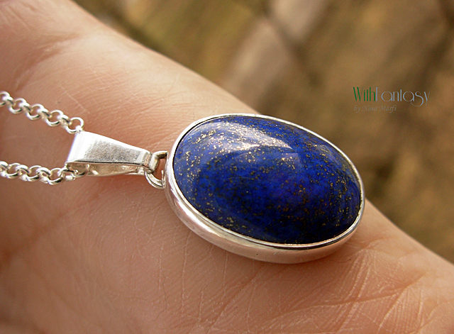 Egyszerű, minimalista medál, tökéletes tavaszra és nyárra, teljesen kézzel készült ezüstből és érdekes, gyönyörű lapisszál. Ay ezüst fehér és polírozott.