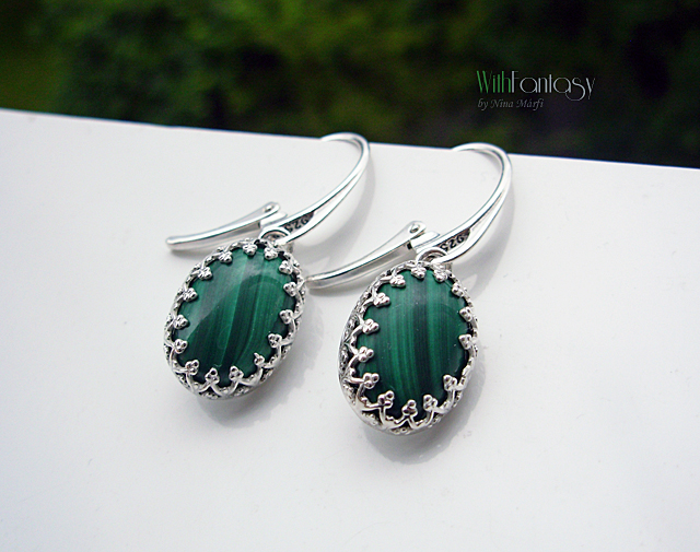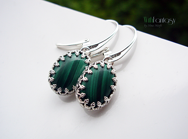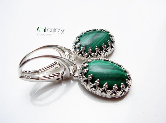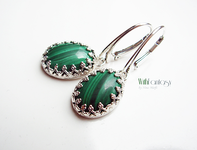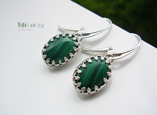 Igazan nőies, friss, nyári fülbevaló gynyörű malachittel .