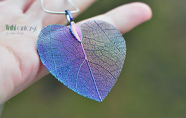 Gyönyörű, különleges, nagyon könnyű medál ami fémből készült. A levél titán bevonatú.