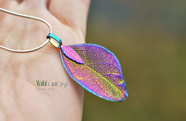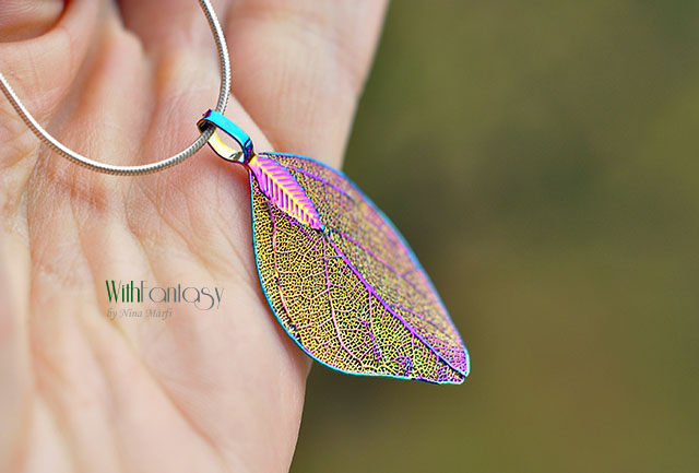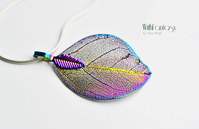 Gyönyörű, különleges, nagyon könnyű medál ami fémből készült. A levél titán bevonatú.