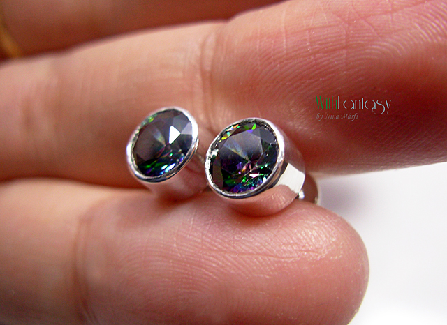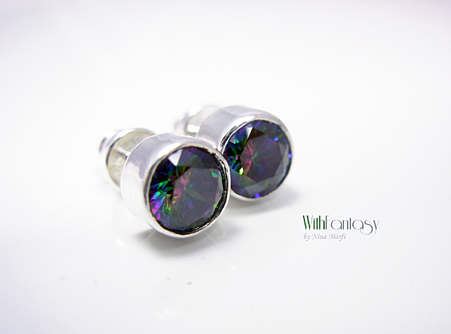 Kis, bedugós, ezüst fülbevaló gyönyörű mistic cirkóniával .A kövek nagyon jó minőségűek –