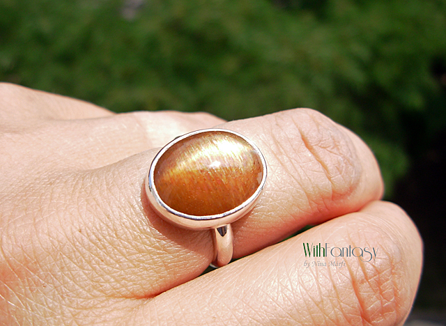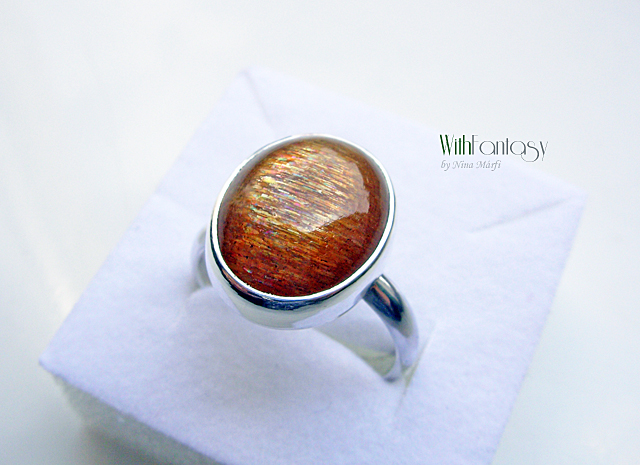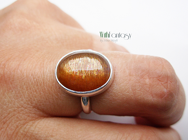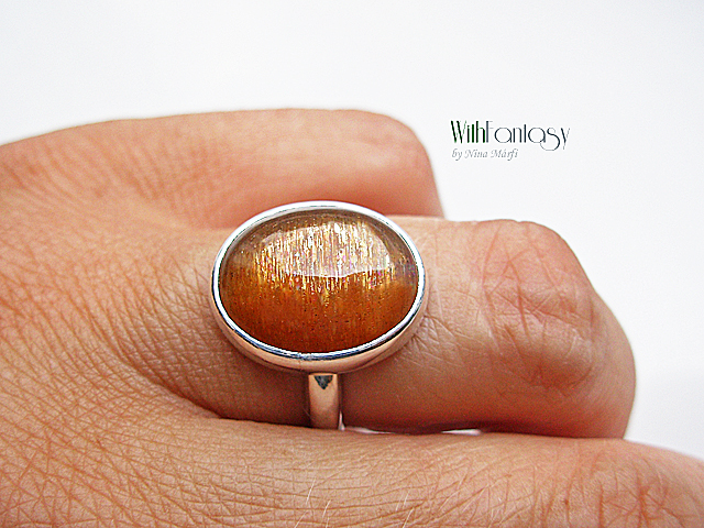 Egyszerű, klasszikus ezüst gyűrű gyönyörű ovális, nagyon érdekes holdkővel. Az ezüst fehér, polírozott.