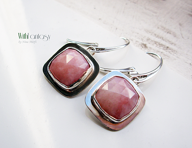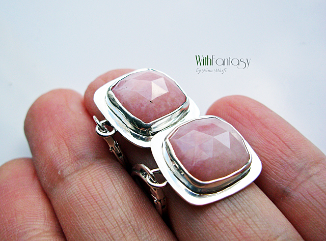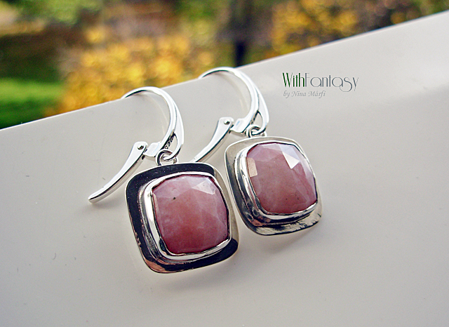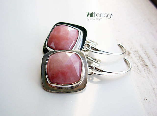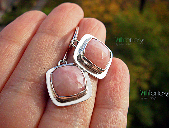 Elegáns, klasszikus fülbevaló gyönyörű tiszta rózsaszínű perui opállal. A kővek nagyon jó minőségűek, Az ezüst fehér, polírozott.