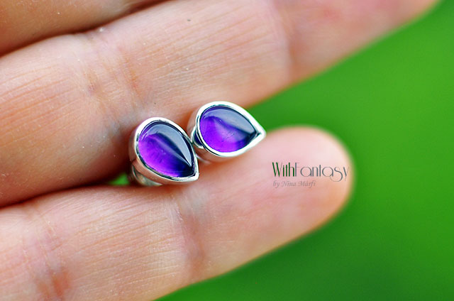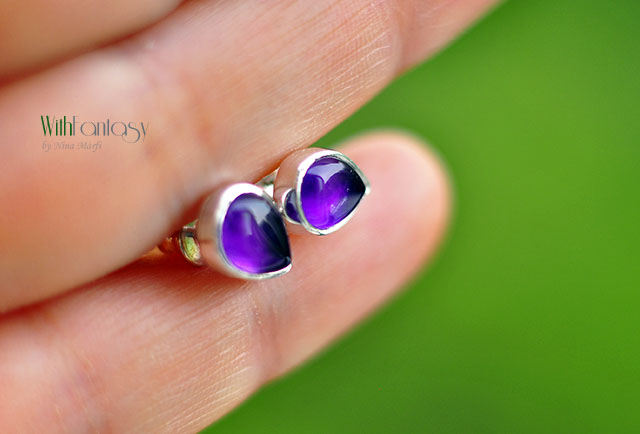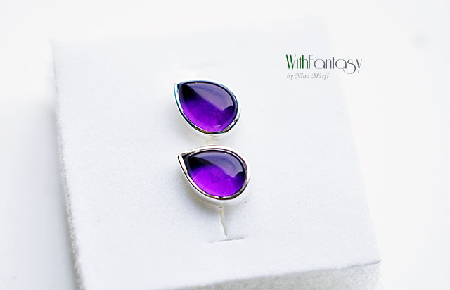 Kis, ezüst, bedugós fülbevaló gyönyörű, diszkrét ametiszttel. A kövek világosak, tiszták, lila színűek, legjobb minőségűek. Az ezüst fehér és polírozott. A fülbevaló kézzel készült.