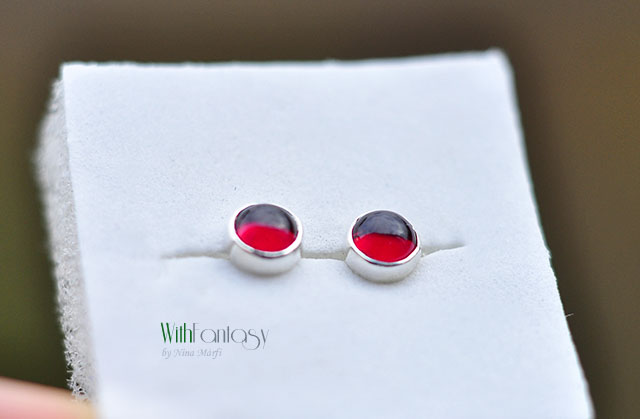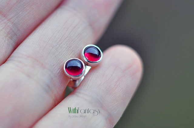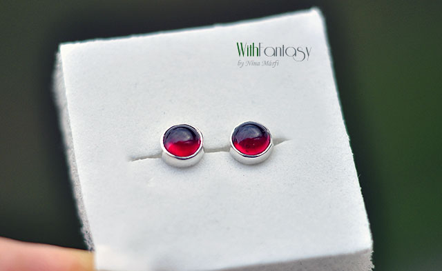 Kis, ezüst, bedugós fülbevaló gyönyörű, diszkrét gránáttal ( gránát rodolit). A kövek tiszták, erős, világos burgund színűek, legjobb minőségűek. Az ezüst fehér és polírozott. A fülbevaló kézzel készült.
