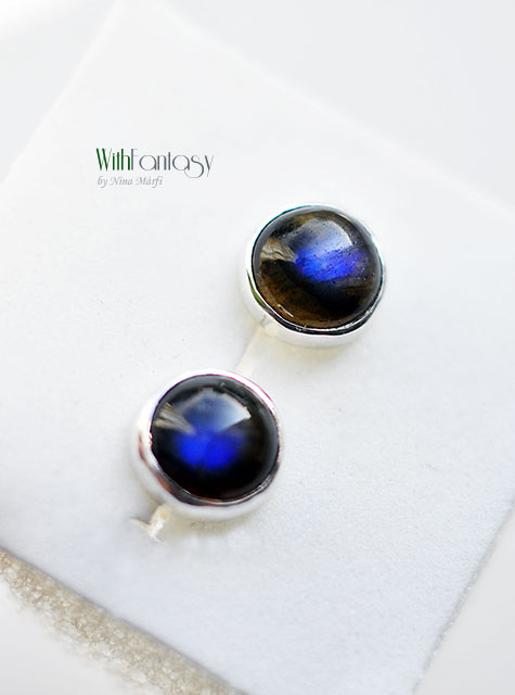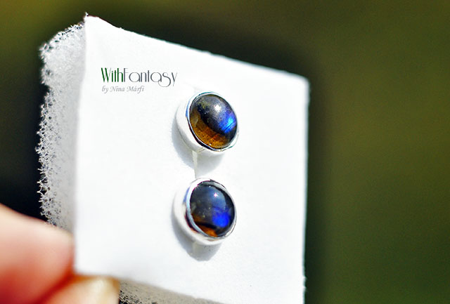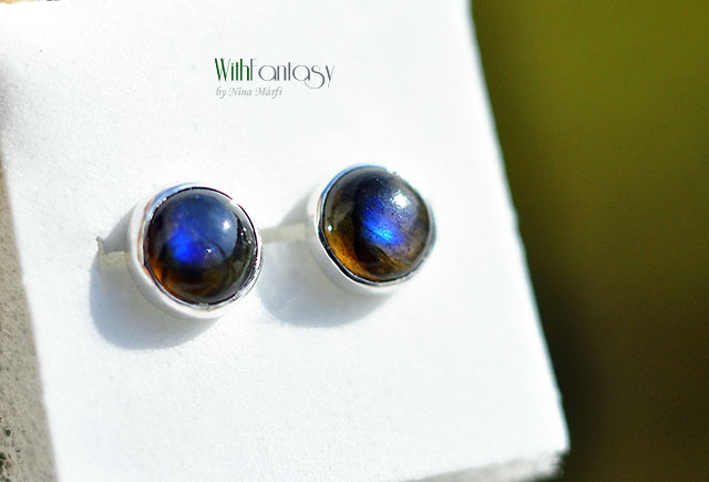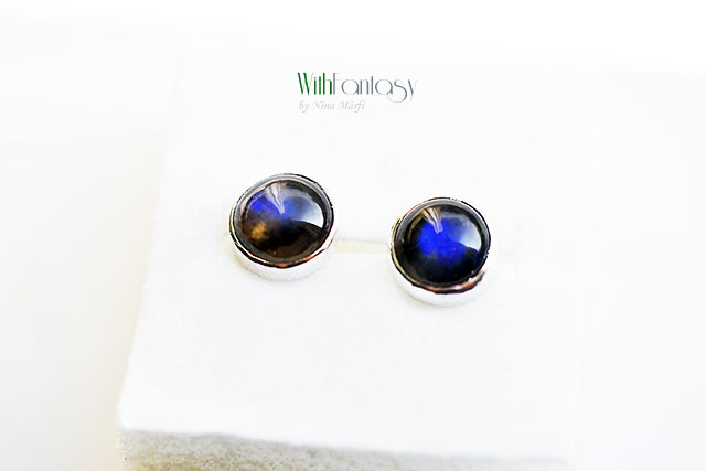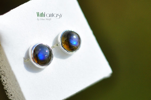Kis, ezüst, bedugós fülbevaló gyönyörű, labradorittal. A kövek nagyon erős kék fénnyel ragyognak. Az ezüst fehér és polírozott. A fülbevaló kézzel készült.