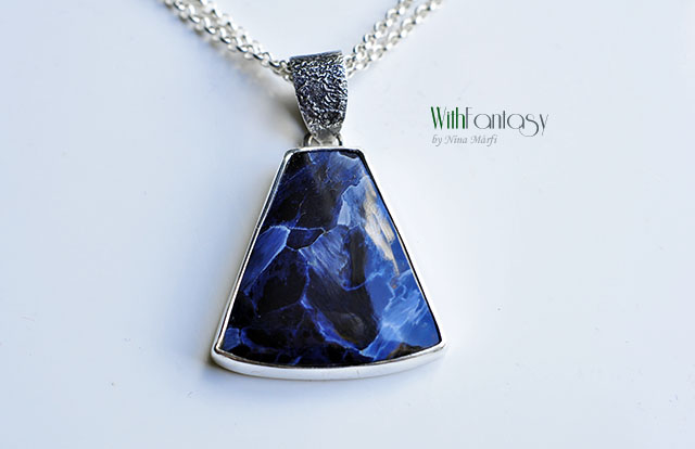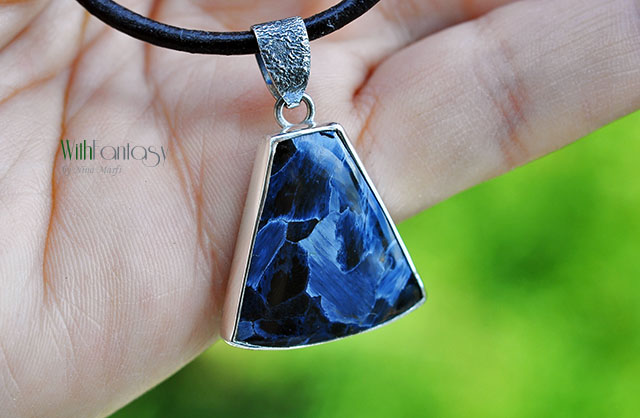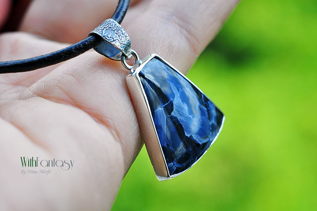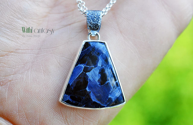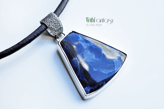 Egyedi, telyesen kézzel készült ezüst medál gyönyörű, érdekes, nagyon ritka pietersittel. Az ezüst részben texturált, oxidált és polírozott.