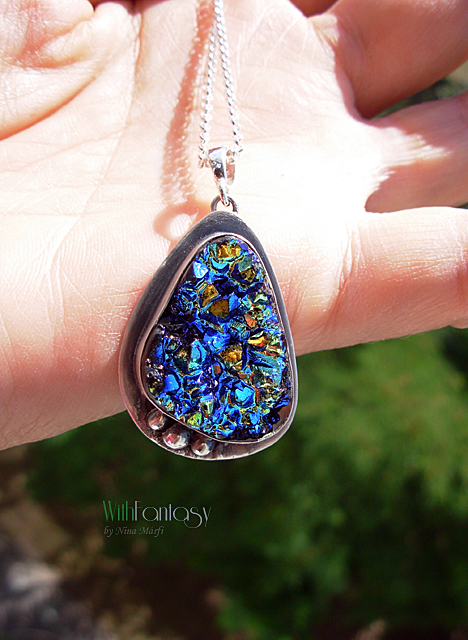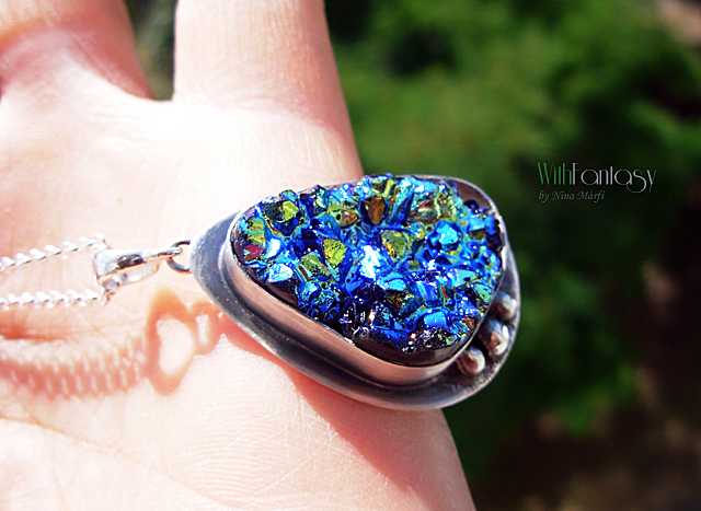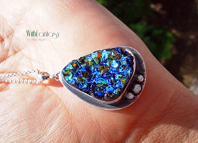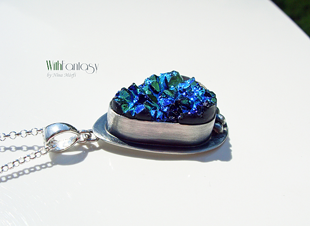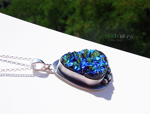 Egyedi, ezüst medál érdekes, különleges kővel (druzzy achát). A kő tényleg gyönyörű, kicsit excentrikus.
