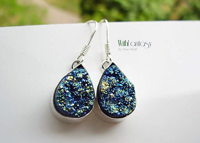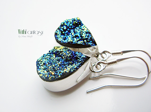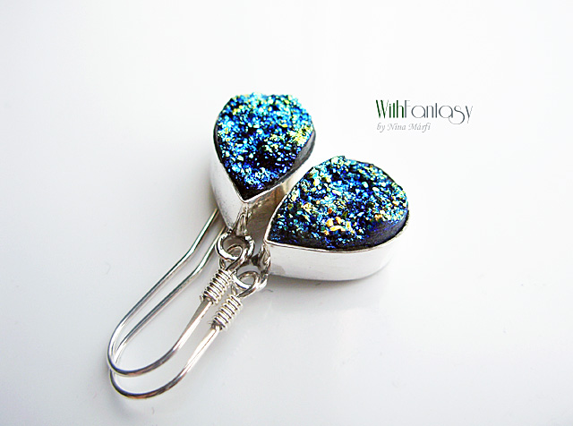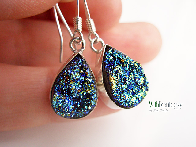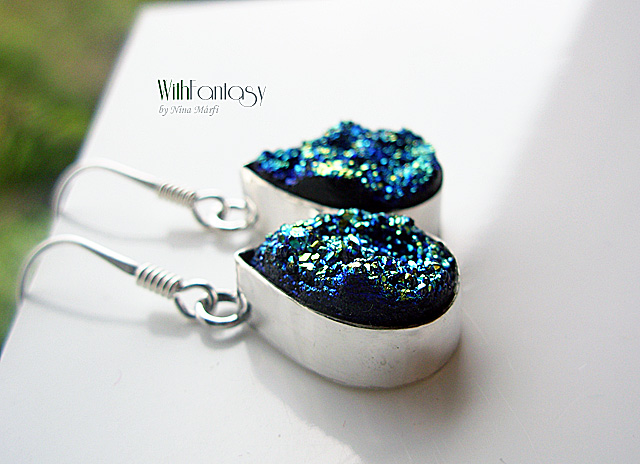Egyedi, érdekes, ezüst fülbevaló druzzy acháttal, Rendélsre késült.