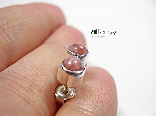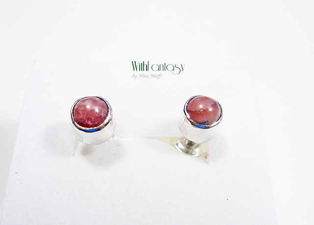 Kis, univerzális, bedugós, ezüst fülbevaló rodokrozittal . Az ezüst fehér és polírozott.